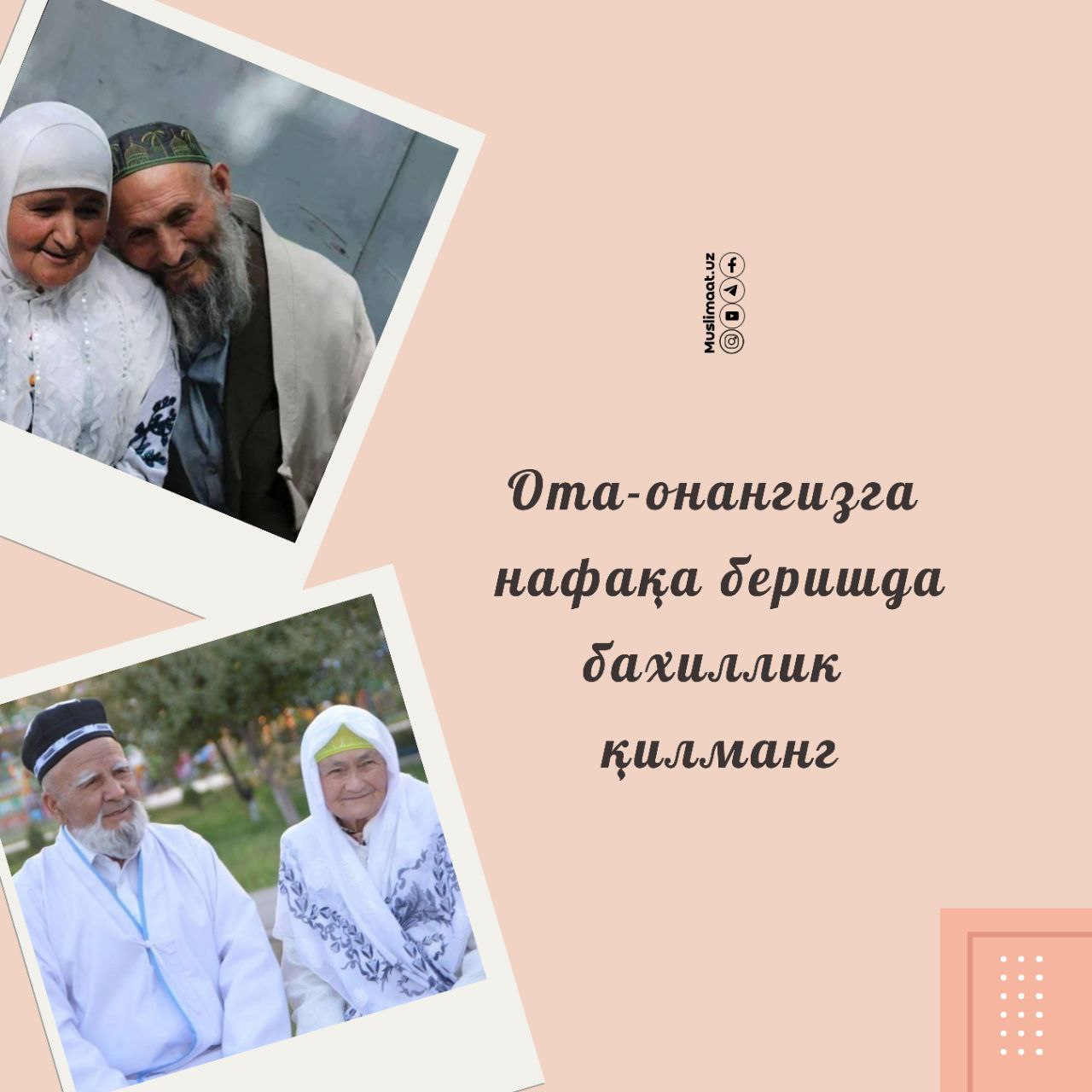 Ота-онангизга нафақа қилишдан бахиллик қилманг. Сизга ҳолларидан шикоят қилишгача боришмасин! Бу сизга ор, уят бўлади. Буни фарзандларингизда ҳам кўрасиз, қайтар дунё!